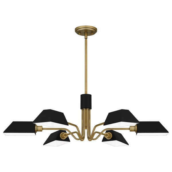 Drawing inspiration from a swivel-arm desk lamp, the Sienna chandelier features a metal shade with a white interior for ample reflection. In your choice of aged brass or antique nickel, this piece features a subtly masculine aesthetic. Sienna makes a great statement piece in a variety of interior settings - from your home office to living room.