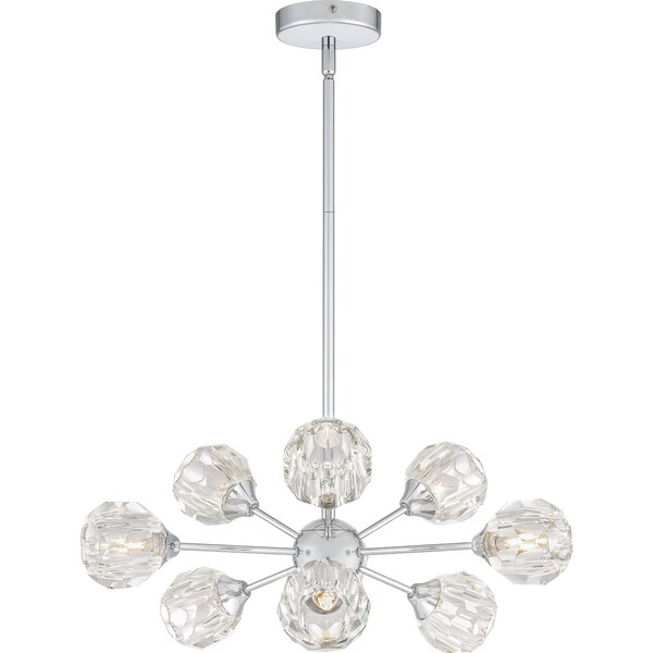 Find yourself mesmerized by the vintage beauty of the Spellbound, a stunning member of Platinum by Quoizel. Inspired by the sputnik designs of decades past, this collection is truly retro reimagined. Spheres of shimmering ice glass are encased in outer shades of crystal glass for added glitz, while polished chrome arms and sockets add a contemporary edge.
