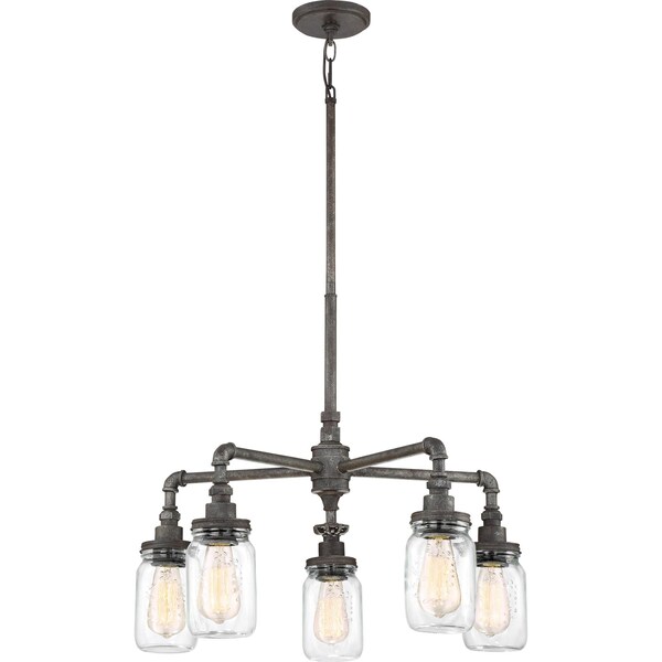Shabby chic, industrial, rustic...the Squire Collection contains all of these elements in one, cohesive design. The fixture body is comprised of pipes and elbows and comes in a Galvanized or Rustic Black finish which features an aged appearance. The beautiful clear glass mason jars are embellished with fruit-inspired designs that encase vintage-style bulbs completing the farmhouse style.