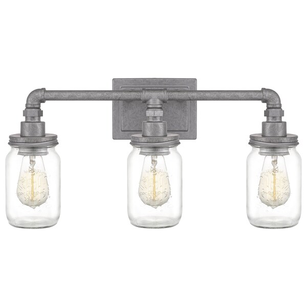 Shabby chic, industrial, rustic...the Squire Collection contains all of these elements in one, cohesive design. The fixture body is comprised of pipes and elbows and comes in a Galvanized or Rustic Black finish which features an aged appearance. The beautiful clear glass mason jars are embellished with fruit-inspired designs that encase vintage-style bulbs completing the farmhouse style.