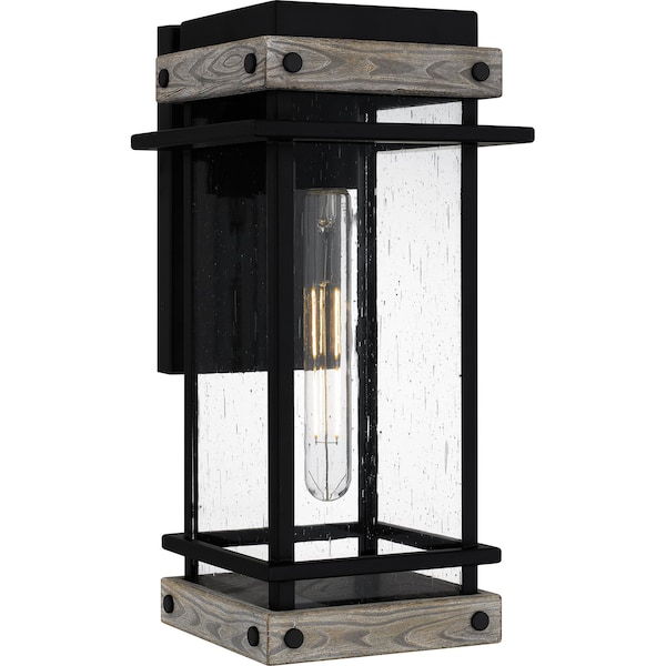 Create a lasting impression with Strader outdoor lanterns. A matte black frame and distressed wood accents pair with clear seedy glass panels for a farmhouse-ready look. Available as a hanging lantern or in various sizes of wall lantern, Strader is an easy way to add stylish illumination to a front porch or landscape.