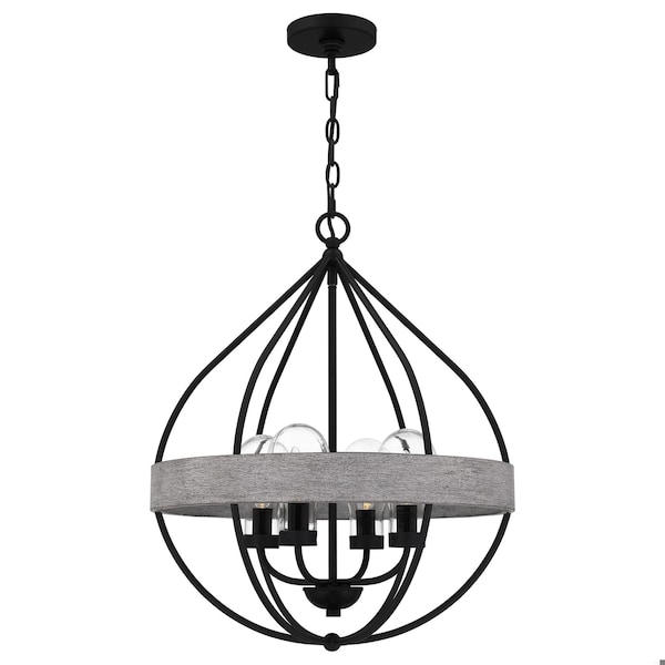 An exaggerated teardrop shape adds elegance to the Tansy pendant, featuring four bulbs and a matte black finish paired with wood-inspired trim. This piece is suitable for outdoor and interior spaces alike. Hang Tansy over a kitchen or dining room table for a rustic, farmhouse statement piece.