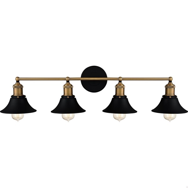 Anglophiles will love the Trafalgar bath light, bringing the London look to a primary or guest bath. Pairing bold matte black with warm, brass-tone elements, this light features a shapely shade and slightly exposed bulbs. The shade’s white interior is a clever design detail that helps maximize light.