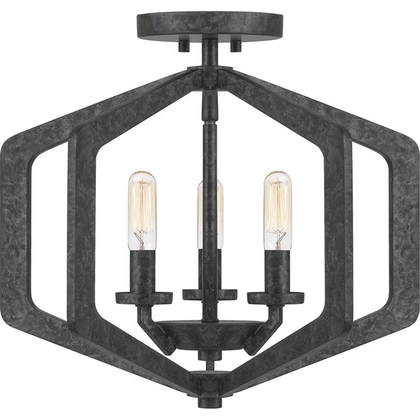 Add a unique element to your home with the Vanguard collection. This transitional style fixture is finished in Old Black and features a geometric silhouette. The thick laser cut frame adds an additional design component without sacrificing light emission.