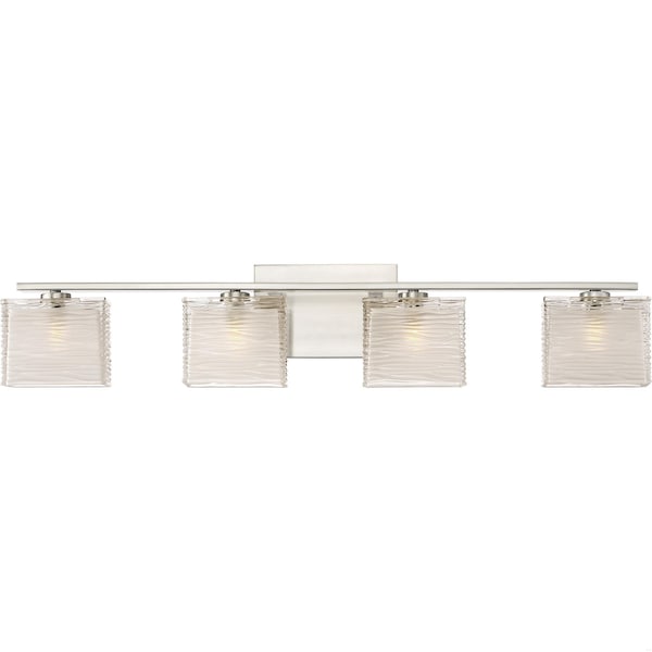 With a unique glass pattern and simple base, the Westcap bath collection is contemporary with a twist. The beautiful waving pattern of the thick clear glass is accented by the sandblasting on the inside. The satiny Brushed Nickel completes the look.
