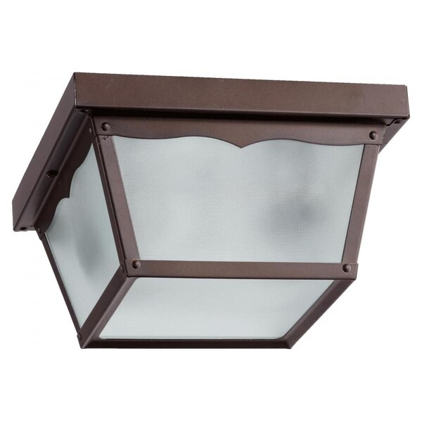 This Two Light Flush Mount has an Oiled Bronze Finish and Mist Lite Glass. It is Damp Rated.