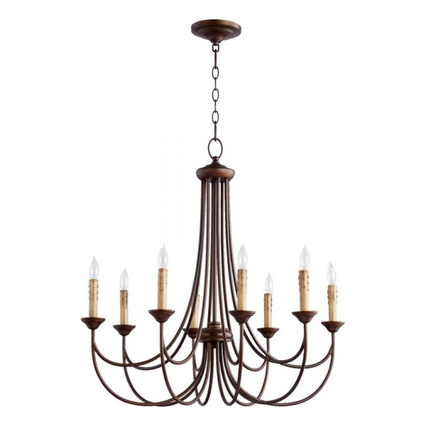 This Eight Light Up Chandelier is part of the Brooks Collection and has an Oiled Bronze Finish. It is Dry Rated.