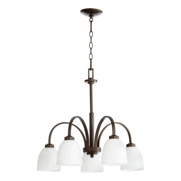 Five Light Oiled Bronze Satin Opal Glass Down Chandelier (Discontinued)