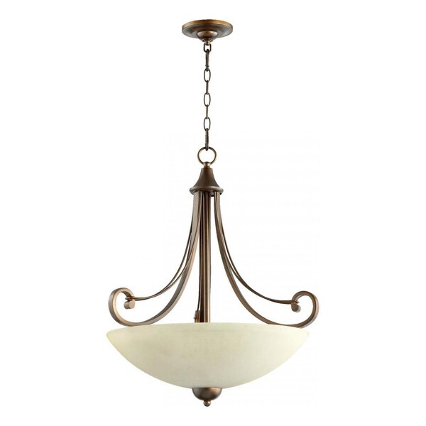 This Four Light Up Pendant is part of the Lariat Collection and has an Oiled Bronze Finish and Amber Scavo Glass. It is Dry Rated.