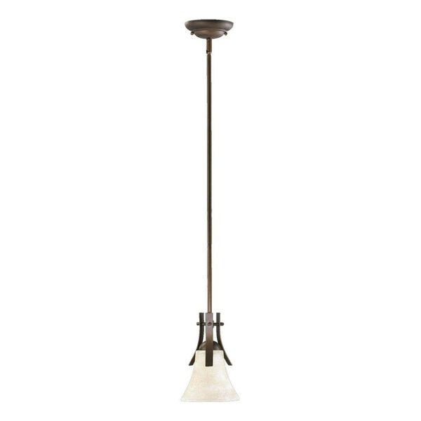 This One Light Down Mini Pendant is part of the Aspen Collection and has an Oiled Bronze Finish and Linen Glass. It is Dry Rated.