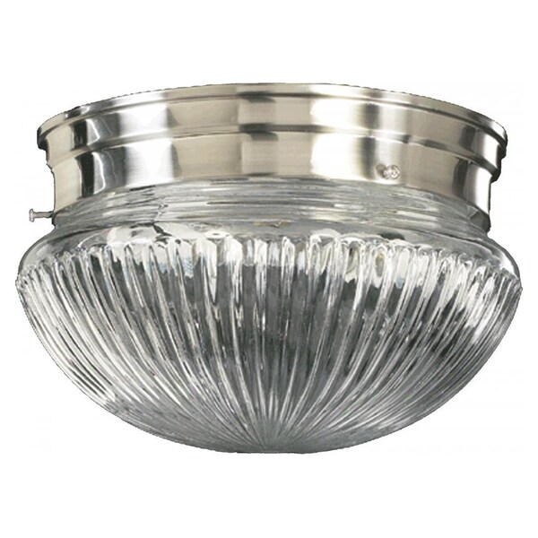 This One Light Mushroom Flush Mount has a Satin Nickel Finish. It is Damp Rated.