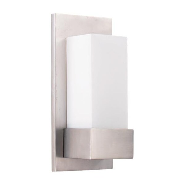This One Light Wall Light has a Satin Nickel Finish and Opal Glass. It is Damp Rated.