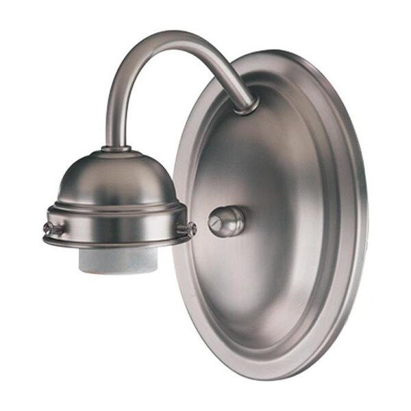 This One Light Wall Light has a Satin Nickel Finish. It is Damp Rated.