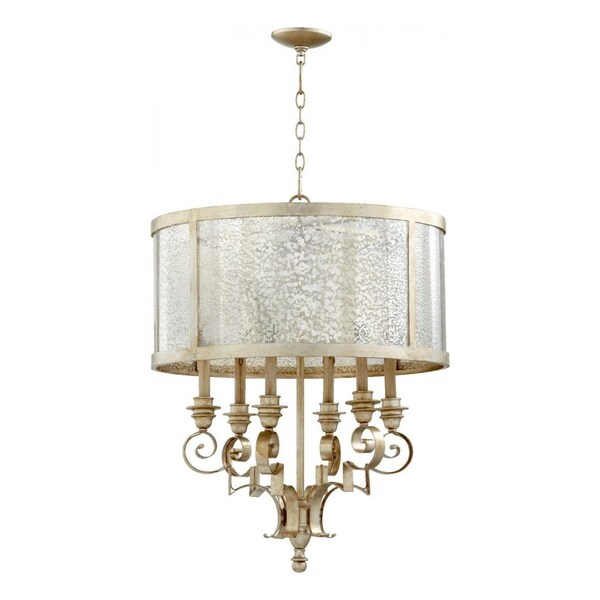 Six Light Aged Silver Leaf Drum Shade Chandelier (Discontinued)
