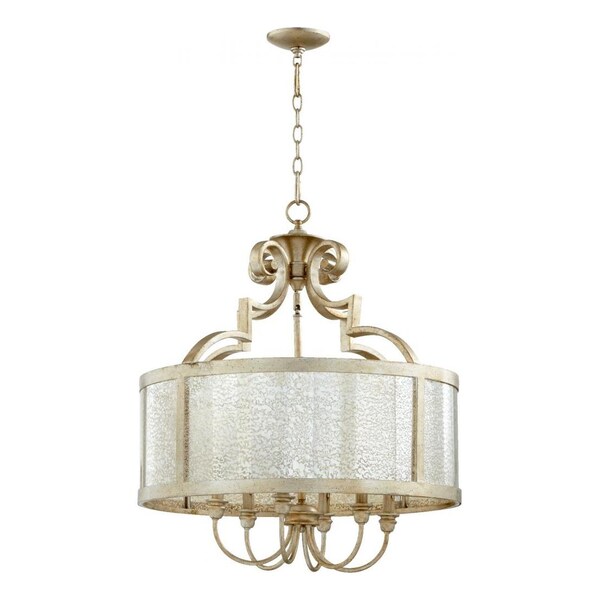 Six Light Aged Silver Leaf Drum Shade Chandelier (Discontinued)