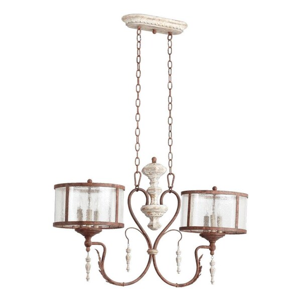 This Six Light Drum Shade Island Light is part of the La Maison Collection and has Clear Seeded Glass and a Manchester Grey W/ Rust Accents Finish. It is Dry Rated.