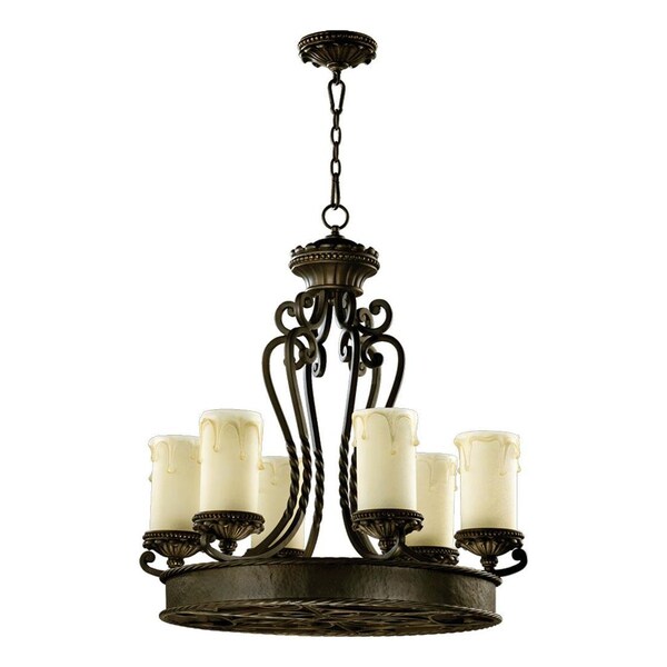 Six Light Oiled Bronze Amber Scavo Glass Candle Chandelier (Discontinued)