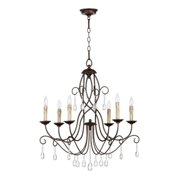 This Six Light Up Chandelier is part of the Cilia Collection and has an Oiled Bronze Finish. It is Dry Rated.