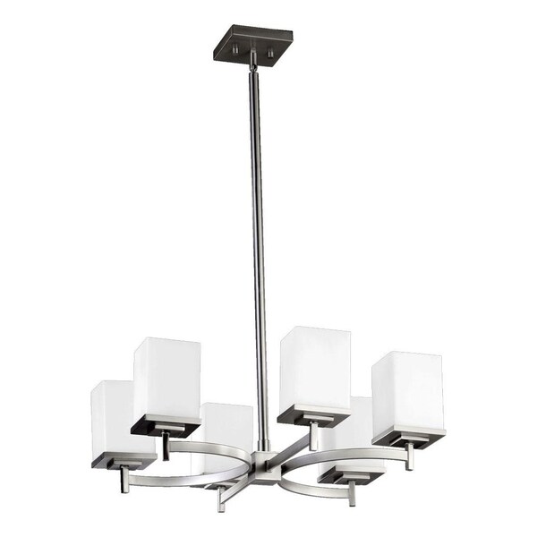 Six Light Satin Nickel Satin Opal Glass Up Chandelier (Discontinued)