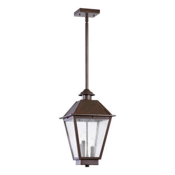 Three Light Oiled Bronze Clear Seeded Glass Hanging Lantern (Discontinued)