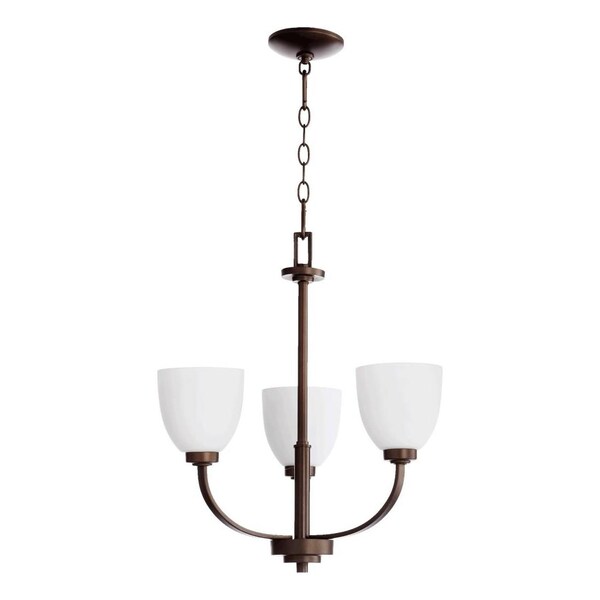 Three Light Oiled Bronze Satin Opal Glass Up Chandelier (Discontinued)