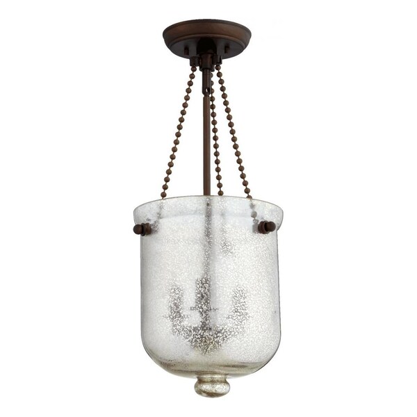 Three Light Oiled Bronze W/ Silver Mercury Foyer Hall Pendant (Discontinued)