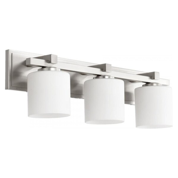 This Three Light Vanity has a Satin Nickel Finish and Satin Opal Glass. It is Damp Rated.