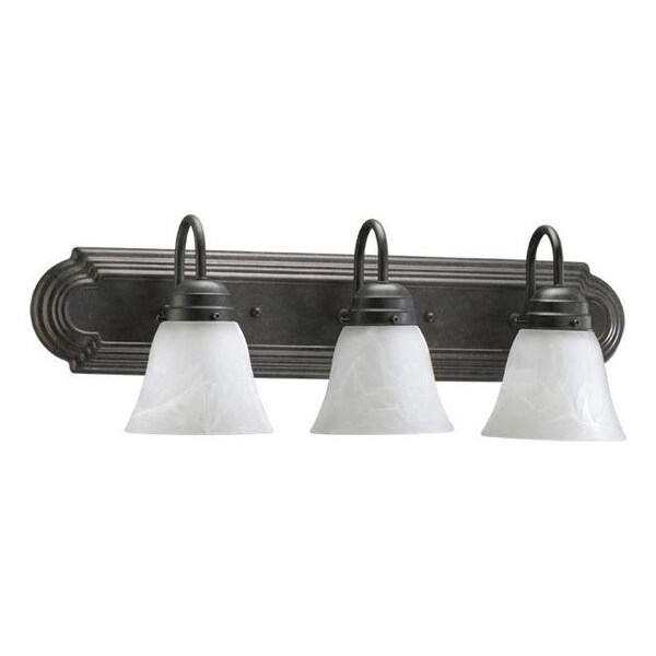 This Three Light Vanity has a Toasted Sienna Finish and White Glass. It is Damp Rated.