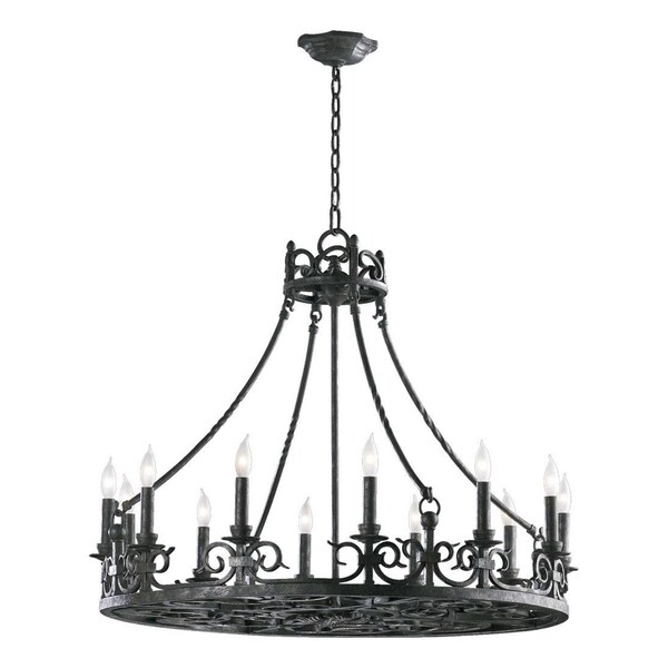 This Twelve Light Up Chandelier is part of the Lorenco Collection and has a Spanish Silver Finish.