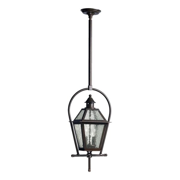 This Two Light Hanging Lantern is part of the Bourbon Street Collection and has an Oiled Bronze Finish and Clear Hammered Glass. It is Damp Rated and Outdoor Capable.