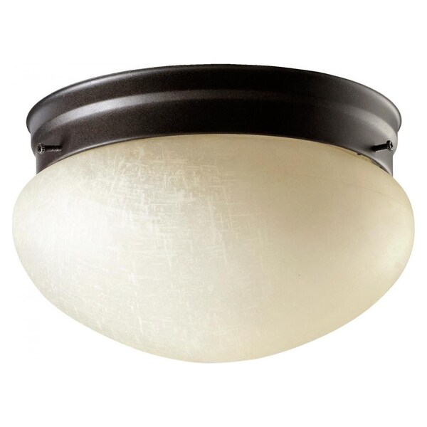 Two Light Oiled Bronze Linen Glass Mushroom Flush Mount (Discontinued)