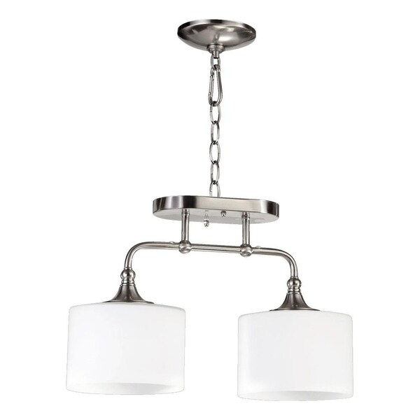 Two Light Satin Nickel Satin Opal Glass Drum Shade Pendant (Discontinued)