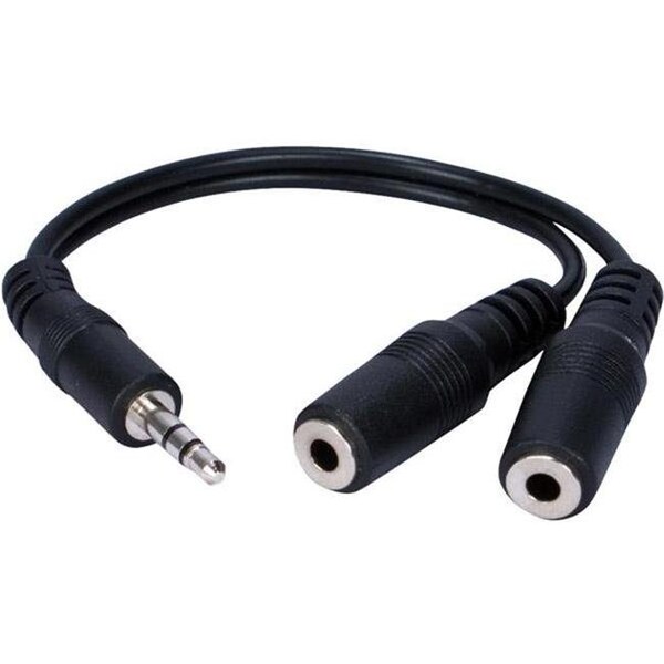 - Connects one 3.5 mm. male to two 3.5 mm. female connections