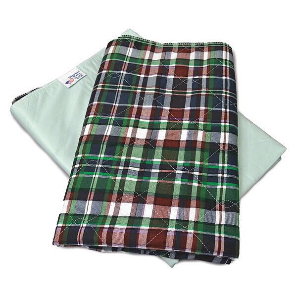 Underpad, Width 34 In., Length 36 In., Poly-Cotton and Vinyl Fabric, Corners Hemmed, Protects Mattress, Density 7 oz., Thickness 9 oz., Color Printed Flannel Design, Machine Wash Warm, Tumble Dry Low, Package Quantity 24