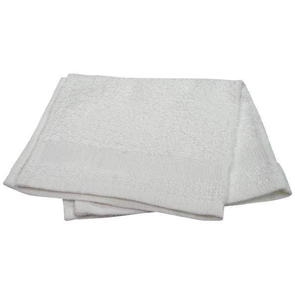 Wash Cloth, Open End, Width 12 In., Length 12 In., Weight 0.75 lb. per Dozen, Cam Border, 100 Percent Cotton Material, Hemmed Edges, Color White,Package Quantity 12