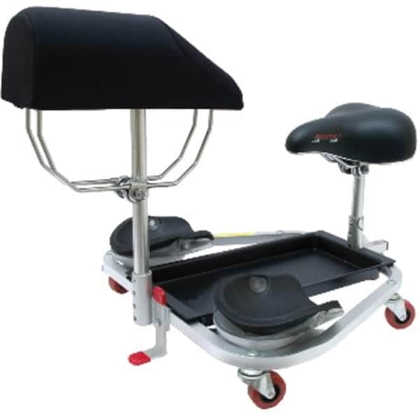 With the RACATAC, you can save your back and knees on the jobsite. This ergonomically designed kneeling/sitting creeper allows you to roll while kneeling or sitting. Built-in, replaceable knee pads allow your knees to rest freely and provide the perfect balance between comfort and protection. The lightweight, durable frame will stand up to the demands of the job, while five swivel casters give 360-degrees of mobility. The handy tool tray keeps your tools and parts within reach, and the seat is adjustable. For jobs requiring you to kneel over, choose the RACATAC with chest support for reduced upper body fatigue. With the RACATAC, you can work comfortably above wet, dirty, or dusty floors.