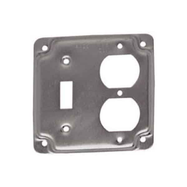 4 Flat Corner Square, Steel, Single Toggle Switch, Duplex Receptacle Box Cover, 12 Rise, Exposed Work, 713 CUIN