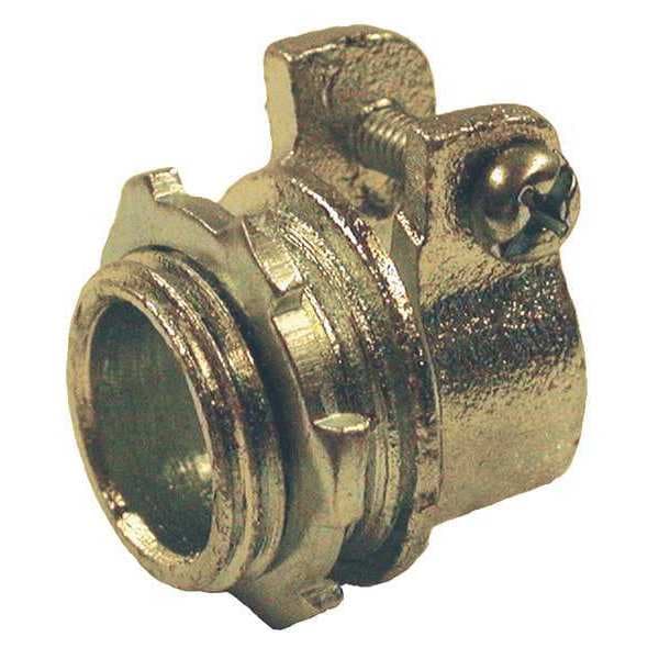 Straight Connector - Squeeze Clamp Style, Box Connection 1/2 in MNPT, Trade Size 3/8 in, Iron, Insulated No, Gray, For Use With AC, Flexible Conduit, MC, cULus Listed, Connector Style Straight, Connection Orientation Straight, Squeeze Clamp, Compatible Knockout Trade Size 3/8 in, Connection Type Squeeze, For Maximum Cable OD 0.64 in, For Minimum Cable OD 0.53 in, Overall Height 1 11/32 in, Overall Length 1 1/16 in, Overall Width 1 1/8 in, Corrosion Resistant, Thread Size 1/2 In.-14