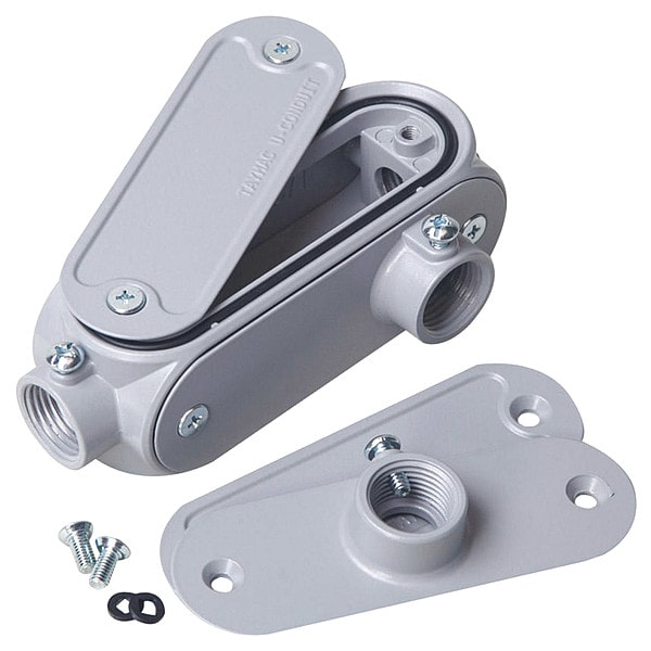 Conduit Outlet Body, Overall Width 5 1/8 in, Overall Height 1 13/16 in, Overall Length 3 in, Weight 0.728 lb, Trade Size 1/2 in, Compatible Conduit Trade Size 1/2 in, Hub Size 1/2 in, Aluminum, Back Type Flat, Body Capacity 8.5 cu in, Body Style LL, Body Type Conduit Outlet Body, Color Gray, Connection Type Threaded, Cover Included Yes, Gasket Included Yes, Hazardous Location No, Hub Style Threaded, Number of Pieces 10, Special Features Interchangeable Panels, Standards UL Listed