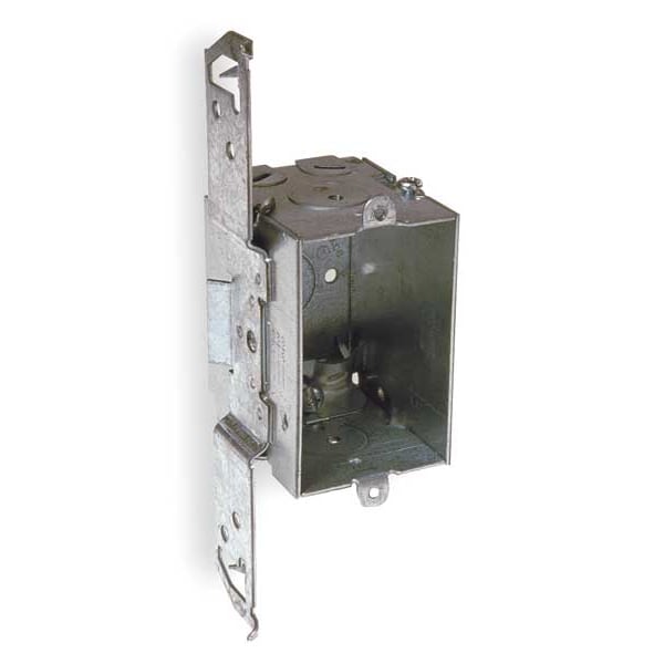 Electrical Box, Box Type Switch, Number of Gangs 1, Bracket Type TS, Capacity 12.5 cu in, Material Steel, Number of 1/2 In. Back Knockouts 1, Number of 1/2 In. Side Knockouts 0, Clamp Type KO Clamps, NMSC Clamps, Nominal Depth 2 1/2 in, Nominal Length 3 in, Nominal Width 2 in, Color Gray, Standards UL Listed
