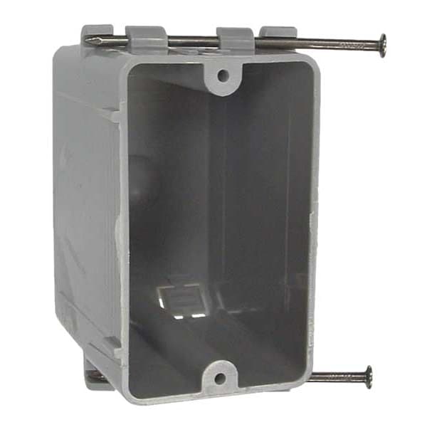Electrical Box, Box Type Cable, Number of Gangs 1, Bracket Type Fixed 1/2 in Setback, Capacity 20.3 cu in, Material PVC, Number of 1/2 In. Back Knockouts 0, Number of 1/2 In. Side Knockouts 0, Clamp Type NMSC Clamps, Nominal Depth 3 1/4 in, Nominal Length 3 5/8 in, Nominal Width 2 1/4 in, Color Gray, Standards CM, RoHS, UL Listed