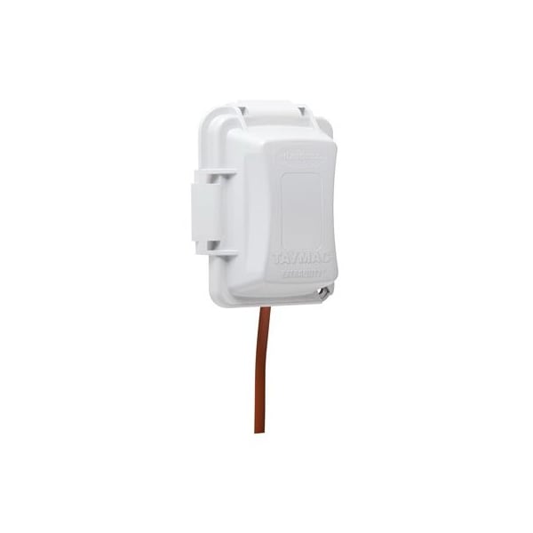 Taymac, White, 1 Gang In Use, 16 In 1, HorizontalVertical, Standard Outlet Cover, High Impact Polycarbonate Construction Provides Maximum Durability, Patented Quick Fit Keyhole Mounting System Allows Installation In Under A Minute, Includes Attached Gasket Mounting Hardware, Base Configuration With Patented Knock Out Technology For Custom Fitting, Lockable Tab, UL Listed, 2011 Nec Compliant Article 4068B 1, NEMA 3R Compliant