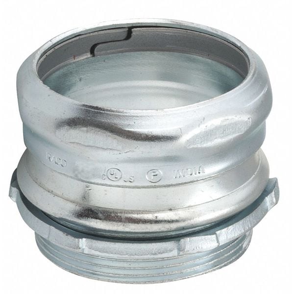 Compression Conduit Connector, Steel, Trade Size 4 in, Overall Length 4 23/32 in, Finish Zinc Plated, Insulated No, Compatible Conduit Type EMT, Conduit Fitting Type Connector, Standards cUL, For Use With EMT, For Conduit Type EMT, Overall Height 5 9/32 in, Overall Width 5 9/32 in, Weight 2.85 lb, Color Gray, Compatible Conduit Trade Size 4 in, Concrete Tight Yes, Connection Orientation Straight