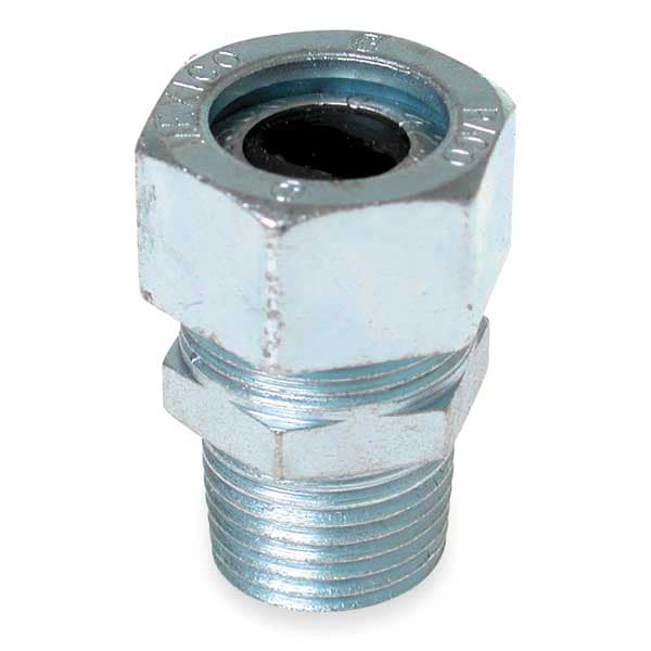Liquid Tight Cord Connector, Cord Dia. Range 0.22 in to 0.42 in, Box Connection 1/2 in MNPT, Material - Cord Connector Steel, External Strain Relief Material No External Strain Relief, Gland Color Code No Code, Body Color - Cord Connector Silver, Number of Cords 1, Style - Connector Straight, Strain Relief Type No External Strain Relief, Length - Box to End of Connector 1 in, Insulated No, Standards CSA C22.2 No. 18, UL 514B, Hazardous Location Rating Not Rated