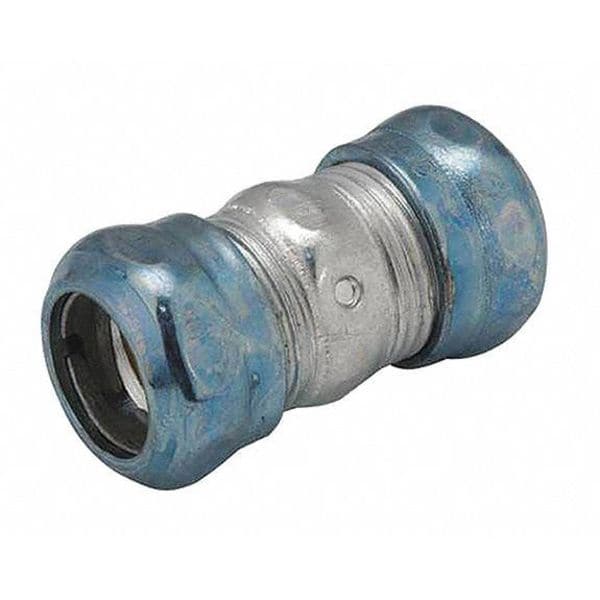 Compression Conduit Coupling, Steel, Trade Size 1/2 in, Overall Length 2 1/16 in, Finish Zinc Plated, Compatible Conduit Type EMT, Conduit Fitting Type Coupling, Standards cULus 514B, For Use With EMT, For Conduit Type EMT, Overall Height 1 3/32 in, Overall Width 1 1/32 in, Weight 0.12 lb, Color Blue, Gray, Compatible Conduit Trade Size 1/2 in, Connection Orientation Straight, Connection Type Compression, Includes Locknut, Sealing Washer, Inside Diameter 0.72 in, Outside Diameter 1.12 in
