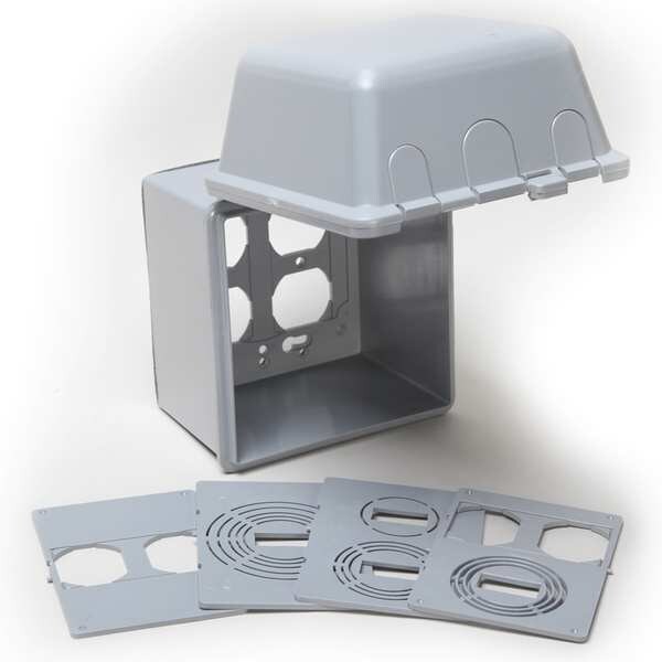 While In Use Weatherproof Cover, Body Material Polycarbonate, Mounting Orientation Vertical, Receptacle Type GFCI, Depth 4 3/4 in, Number of Gangs 2, Width 5 23/65 in, Height 5 23/64 in, Features Non-Metallic, 55-In-1 Configuration, Inside Depth 4 3/4 in, Gasket Material Polyethylene Foam, Color Clear, Standards UL, Includes Attached Gasket and Mounting Hardware
