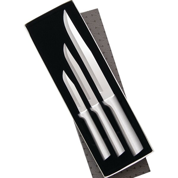 Each individual 3-piece Housewarming Set includes a Regular Paring Utility/Steak and Slicer. We hand sharpen super-hard surgical-grade T420 high-carbon stainless steel for a blade with maximum edge retention. Handles have a built-in finger guard to protect fingers while cutting. Knives are hollow ground to achieve and maintain a sharp edge that lasts. When sharpening is needed its an easy and inexpensive at-home process with our Quick Edge Knife Sharpener. Rada Mfg. Co. will replace any product manufactured by our company returned to us due to defects in material or workmanship.
