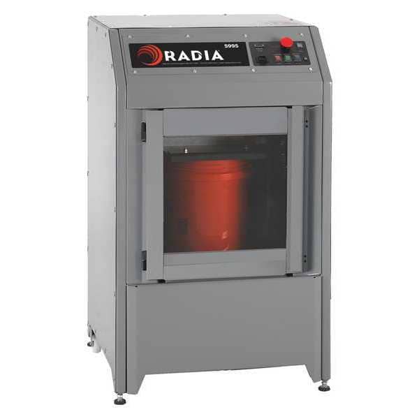 The RADIA 5995PB Paint Shaker is an electric, vibrating-style paint shaker designed to mix paint and similar materials in containers ranging from pint-sized cans up to 5-gallon containers. It operates on 110V, 60 Hz power and supports a load capacity of up to 80 lb. The shaker accommodates container heights between 4 in. and 18 in. and features push-button timer controls for 2- and 3-minute intervals. Constructed for consistent mixing performance, the unit has an overall size of 46-1/2 in. high by 27-1/2 in. wide by 27-1/2 in. deep and meets ANSI/UL and CAN/US electrical standards.