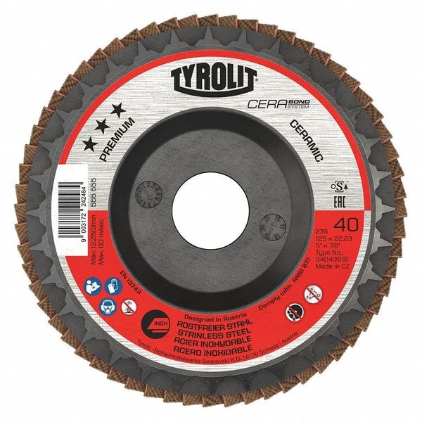 Flap Disc,T29,5" x 7/8",60 Grit,PK10