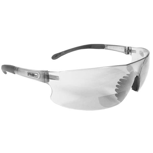 Reader Safety Glasses, Series Rad-Sequel RSx(TM), Gender Unisex, Lens Color Clear, Lens Coating Scratch-Resistant, No Foam Lined, Eyewear Frame Design Wraparound, Eyewear Frame Style Frameless, Frame Color Clear, Eyewear Size Universal, Frame Material Polycarbonate, Lens Material Polycarbonate, Temple Color Black, Temple Style Hybrid, Photochromatic Lens No, Metal Detectable No, X-Ray Detectable No, UV Protection 0.999, Standards ANSI Z87.1